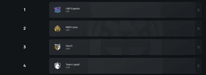 Son grupta, MAD Lions ve LNG Esports, geçişin açık favorileri olacak. Gen.G, sezon başında iyi bir maç çıkarmasına rağmen sezon sonunda çok kötü bir şekilde pes etti ve yeni yamalara uyum sağlayamadı, bu yüzden kendilerine olan güvenimi kaybettiler. Düşüşler sadece takım etkileşiminde değil, aynı zamanda bireysel oyunda da görülebilir.